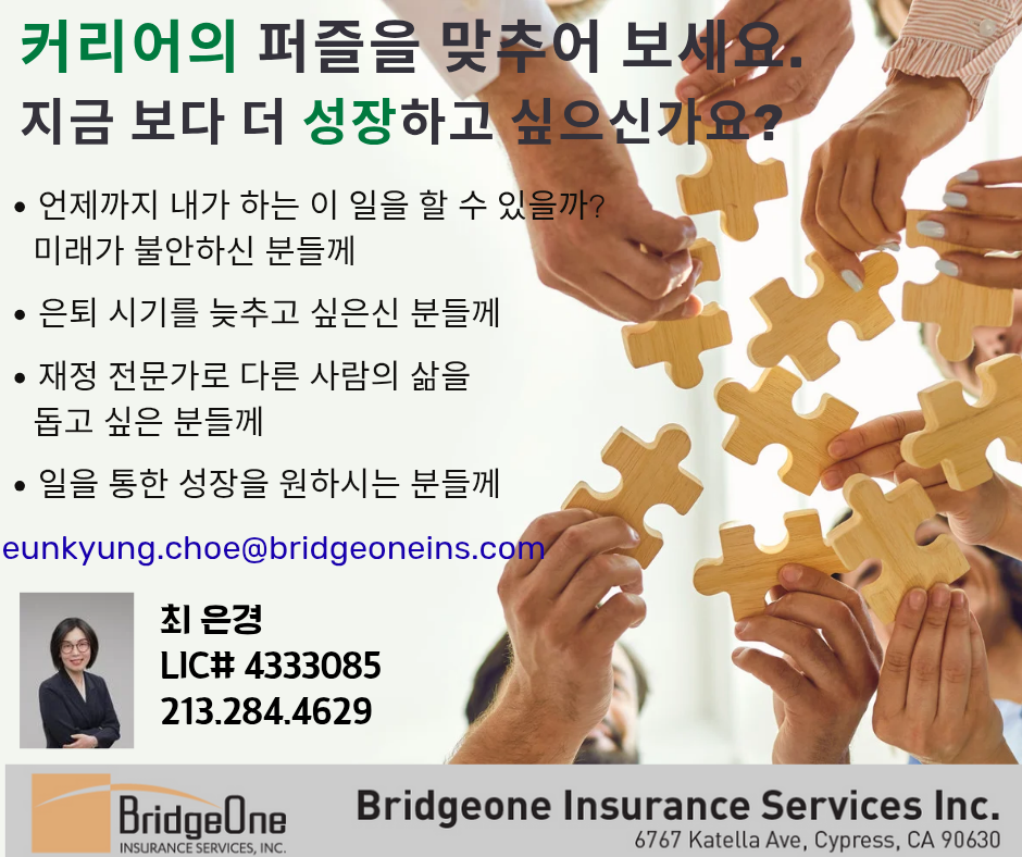 BridgeOne Insurance 같은 마음으로 함께하는에이전트 최은경 ☎ 상담 213-284-4629