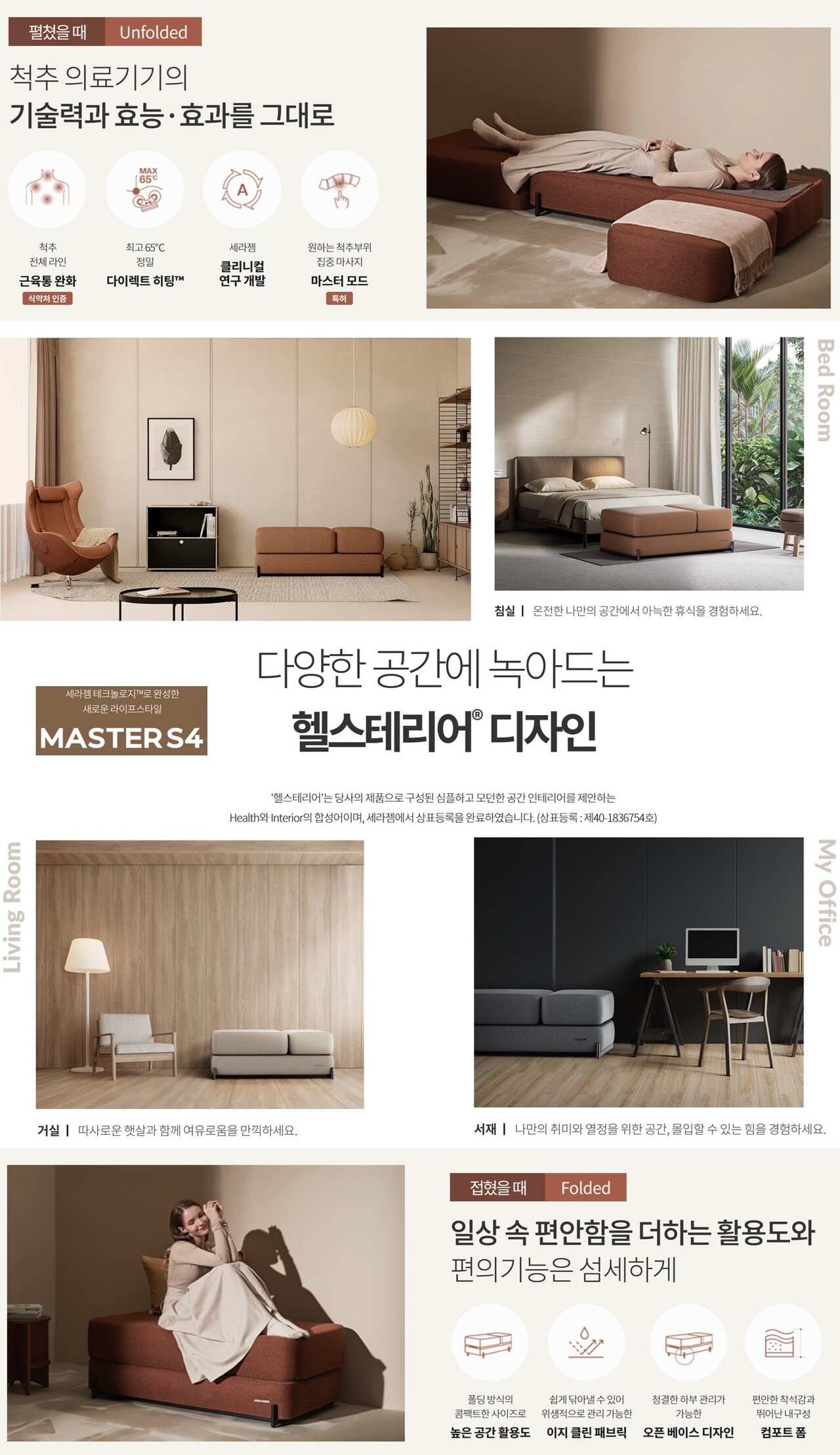 세라젬 마스터제품은 마사지체어,지압침대류와같은 휴식가전 달리