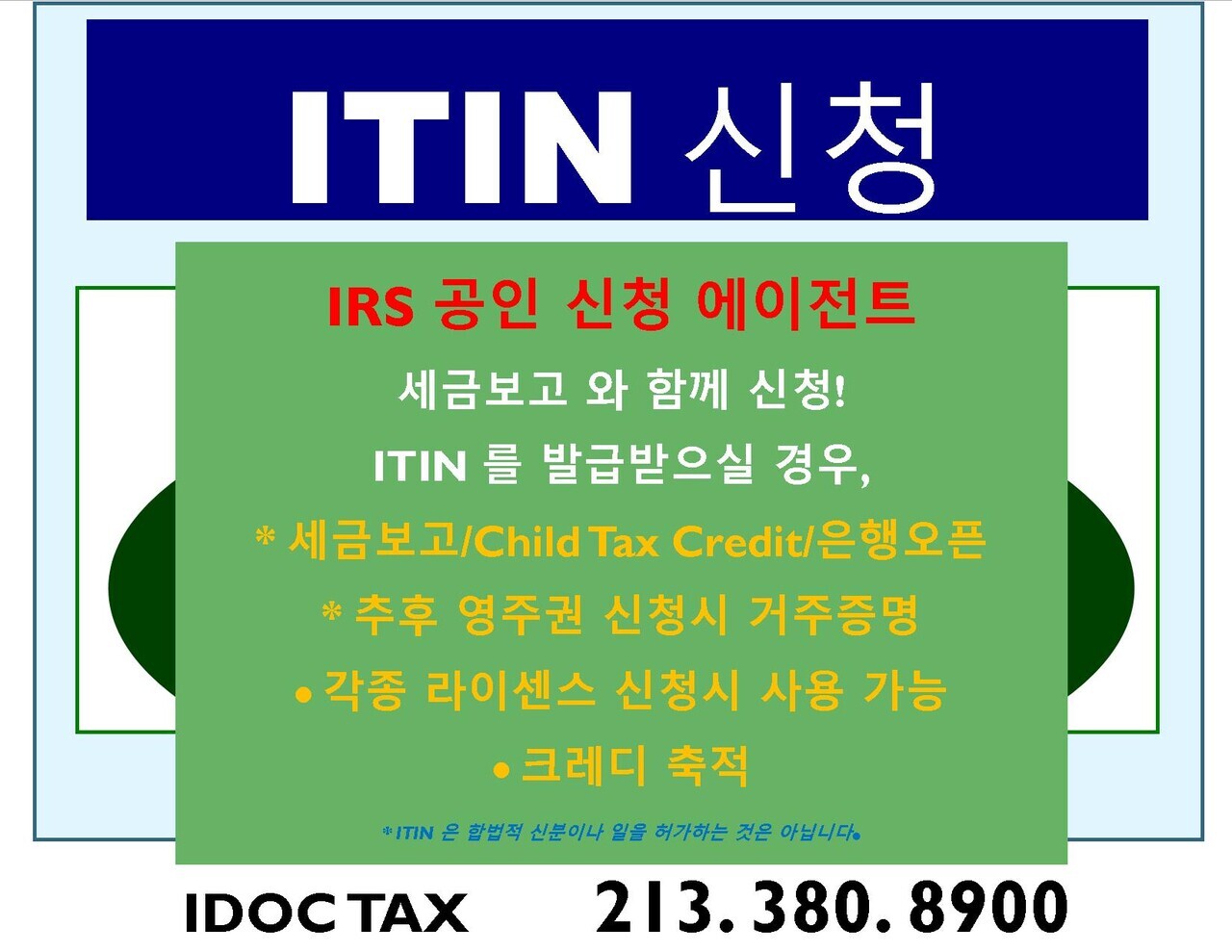 ITIN 신청을 위하여 IRS 로부터 승인된 Certifying Acceptance Agent 입니다.