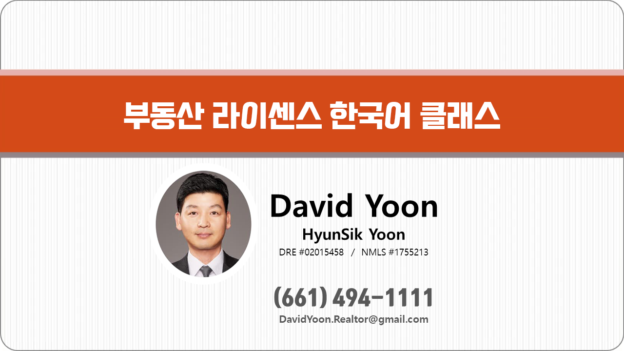 #David Yoon 캘리포니아 부동산학교 라이센스
