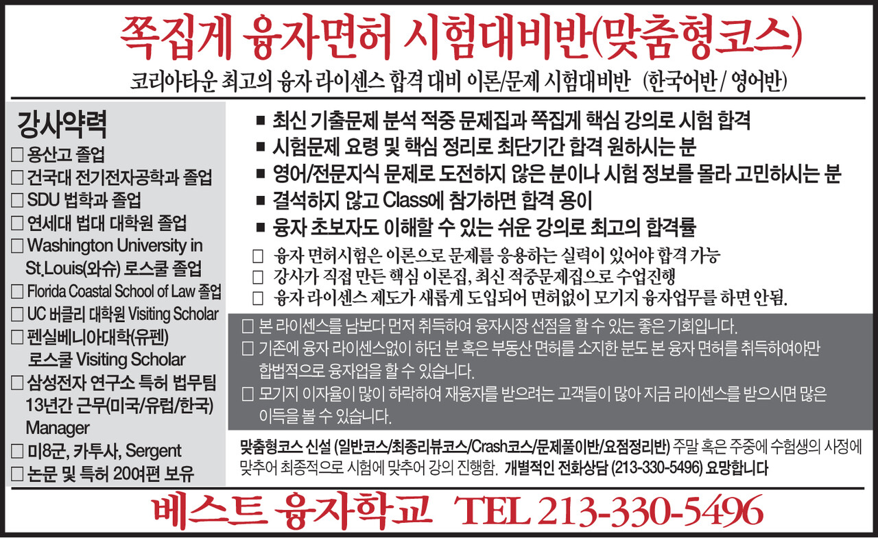 - 코리아 타운 유일의 융자면허 시험대비반