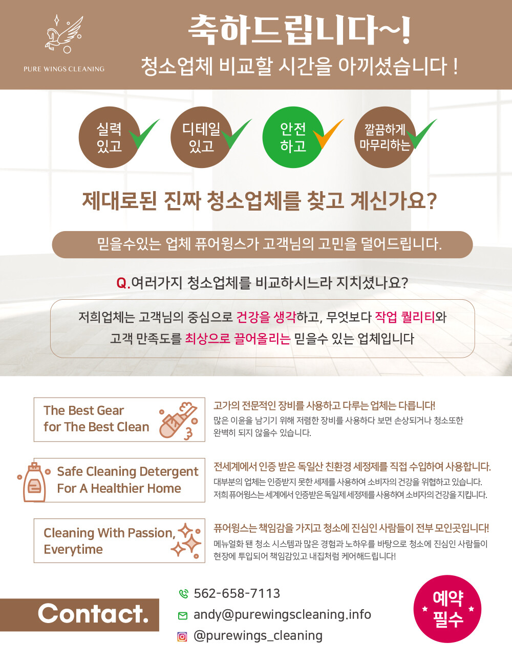 ✅ 최신형 전문 장비 도입 (고가의 스팀장비 & 최신 바닥 장비등)