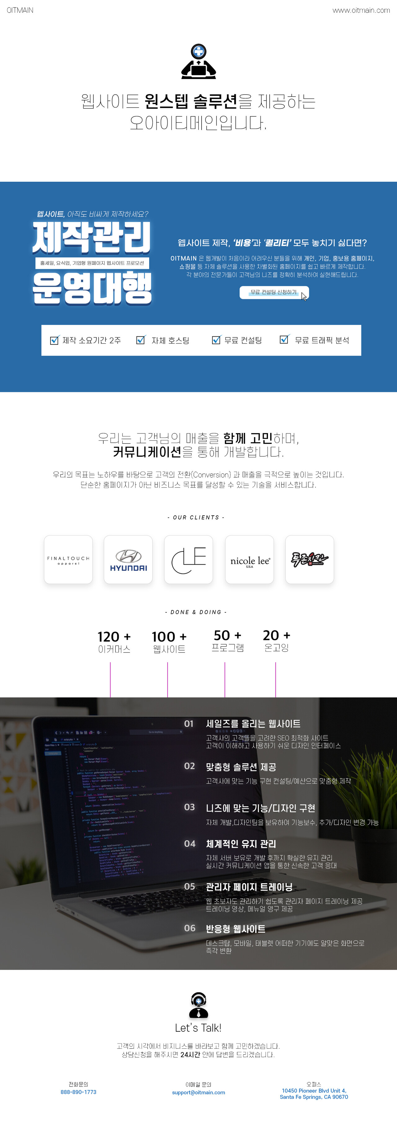 • Oitmain은 10년 경력의 전문가가 웹사이트 제작부터 관리, 유지 보수 서비스를 제공합니다.