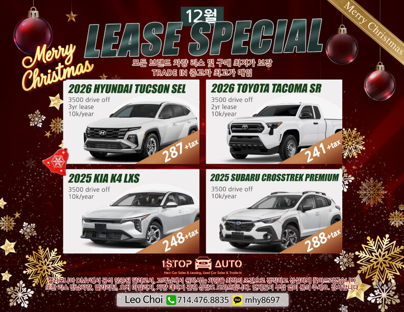 12월 모든 차량리스및 구매 최저가 보장합니다최저가 리스 리턴 중고차 최고가 매입 LEO✨