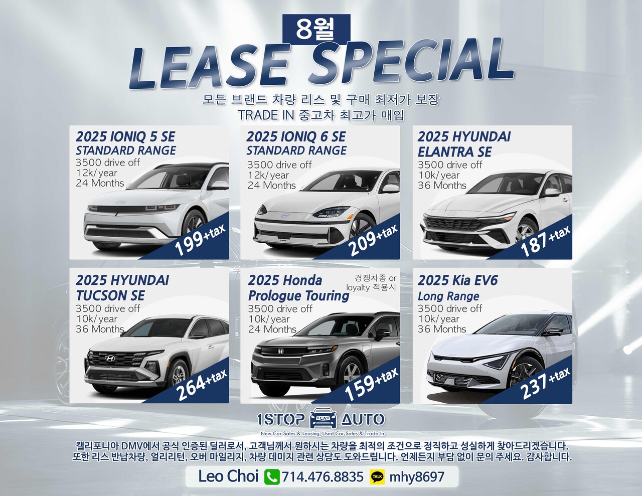 2026 기타 8월 모든 차종 리스 및 구매 최저가 보장 리스 리턴 714-476-8835 LEO