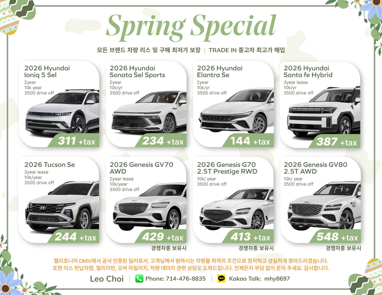 - 월 페이먼트: $466 + 세금 (경쟁 차종 리베이트 적용시)