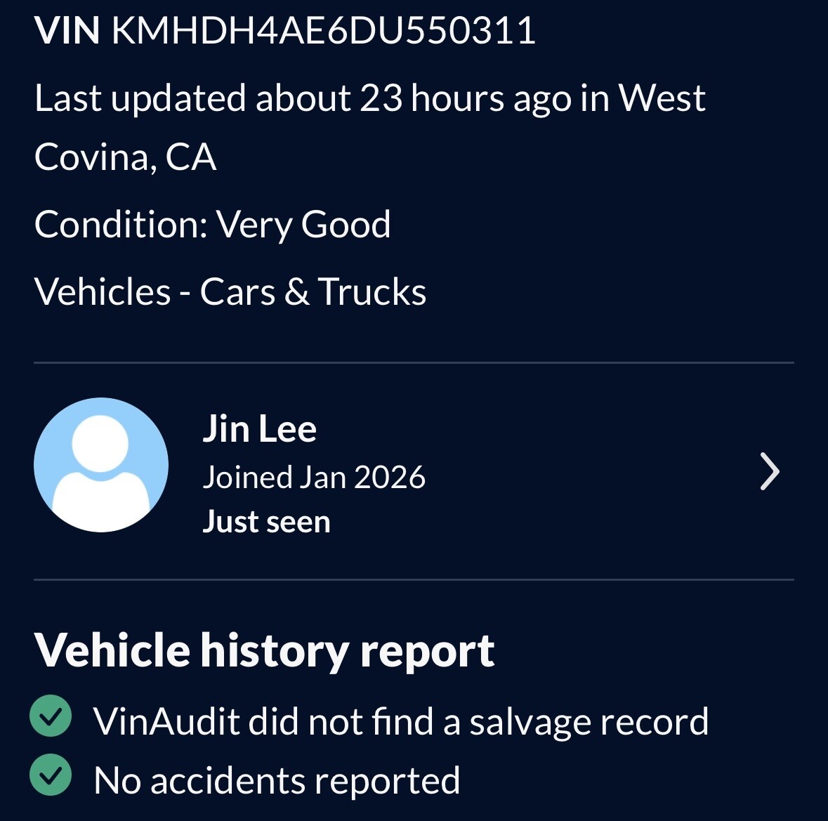 무사고 / 108000miles / $4000