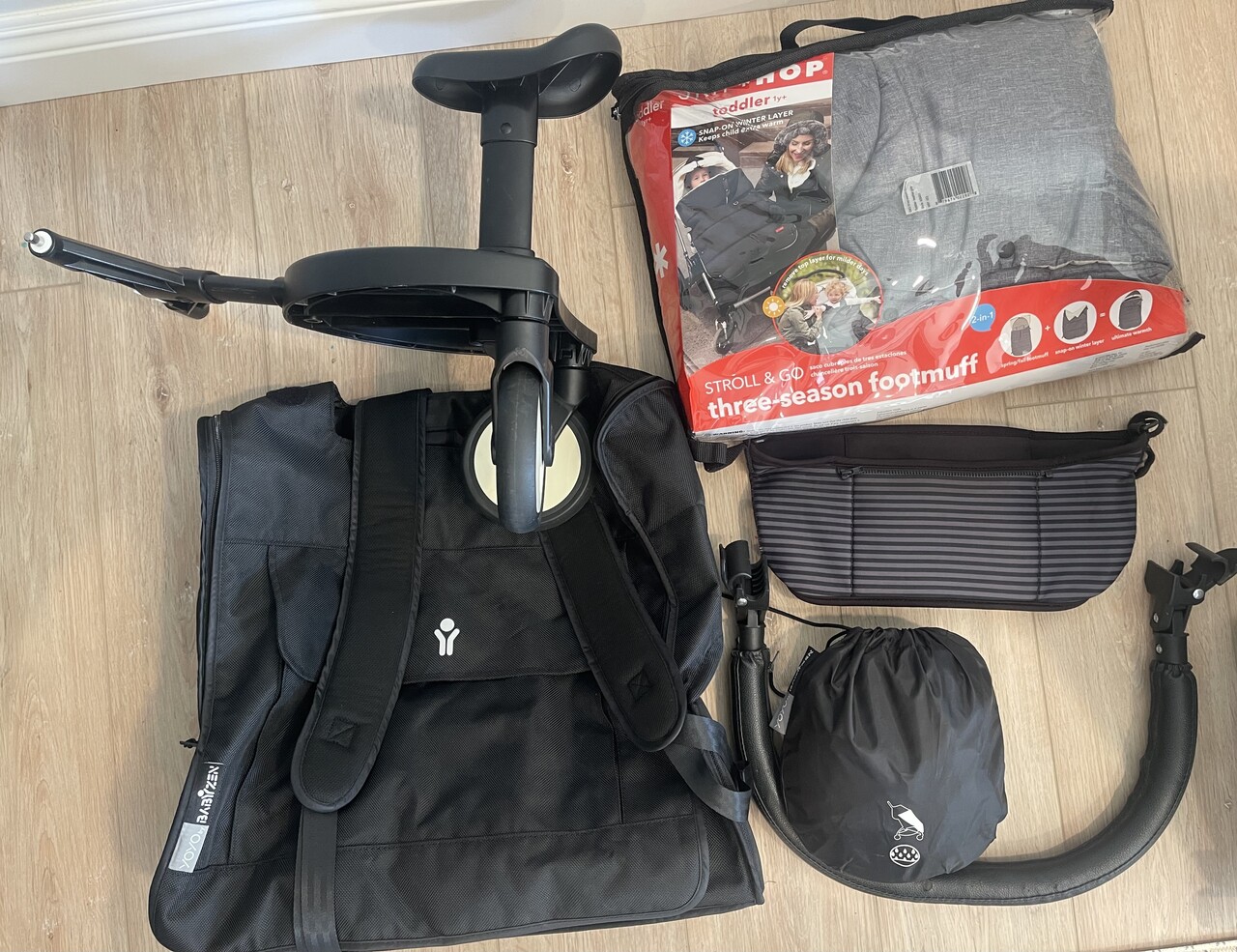따로 구매한 정품 가방, 비막이, 컵홀더, 유아손잡이, footmuff도 같이 드립니다.