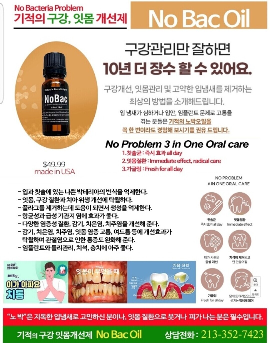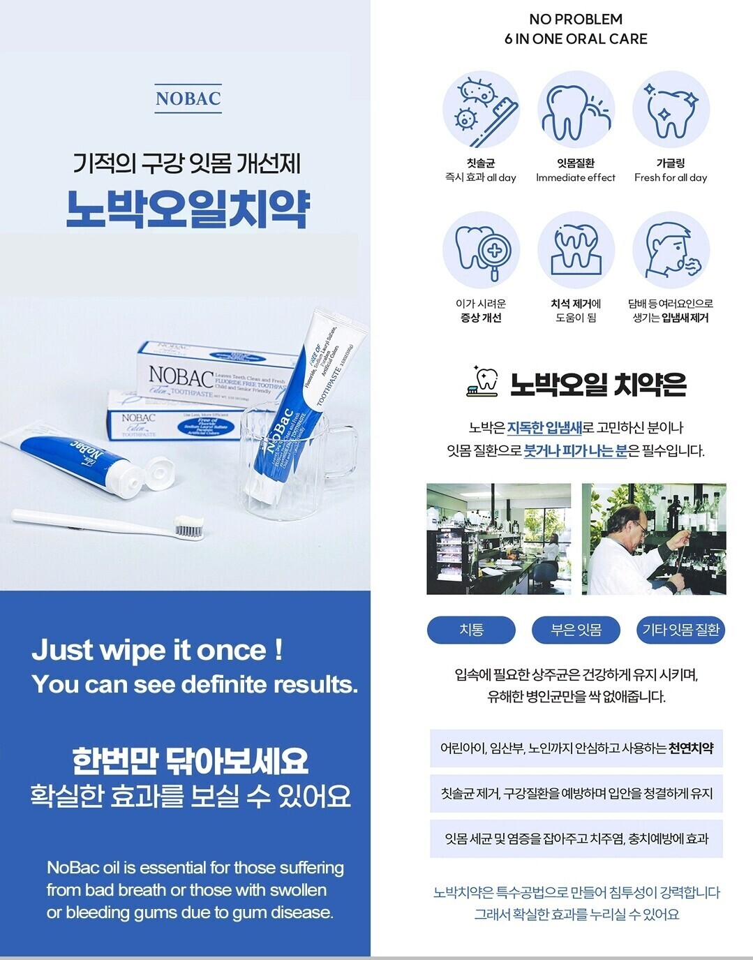 NoBac 오일은 잇몸의 염증과 나쁜 균들을 죽이며 좋은 균들의 활성화를 유도하는 아주 좋은 제품이다.