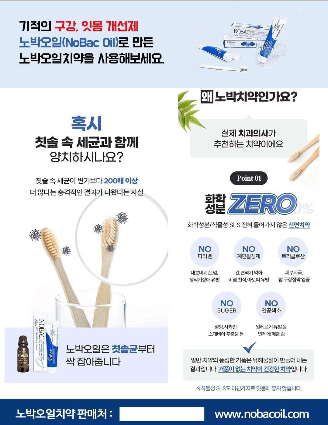 노박오일에 이어 노박치약이 개발되어 이제 모든 사람들이 노박오일의 효능을 쉽게 경험할 수 있게 되었습니다