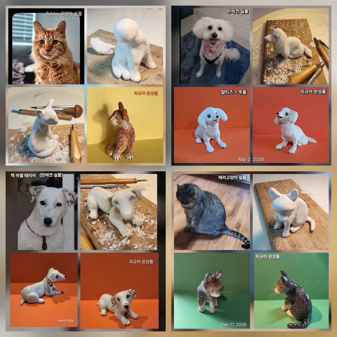 가족처럼 사랑하는 반려견, 반려묘등. 애완동물의 모형(피규어)을