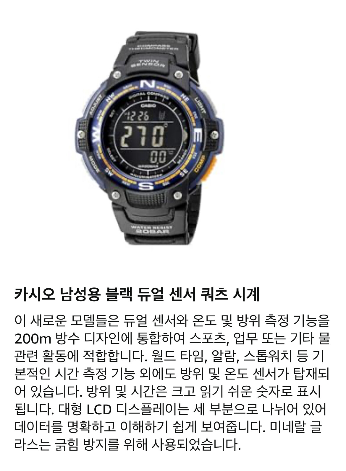 카시오 SGW100-2B 듀얼 센서 쿼츠 시계