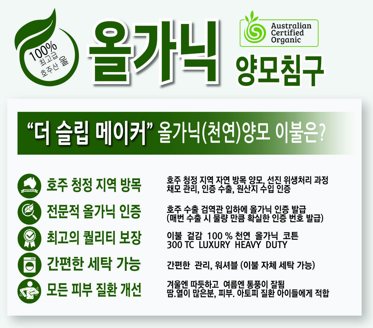 호주산 천연 앙모이며 겉에 면은 300수 유기농 면입니다.