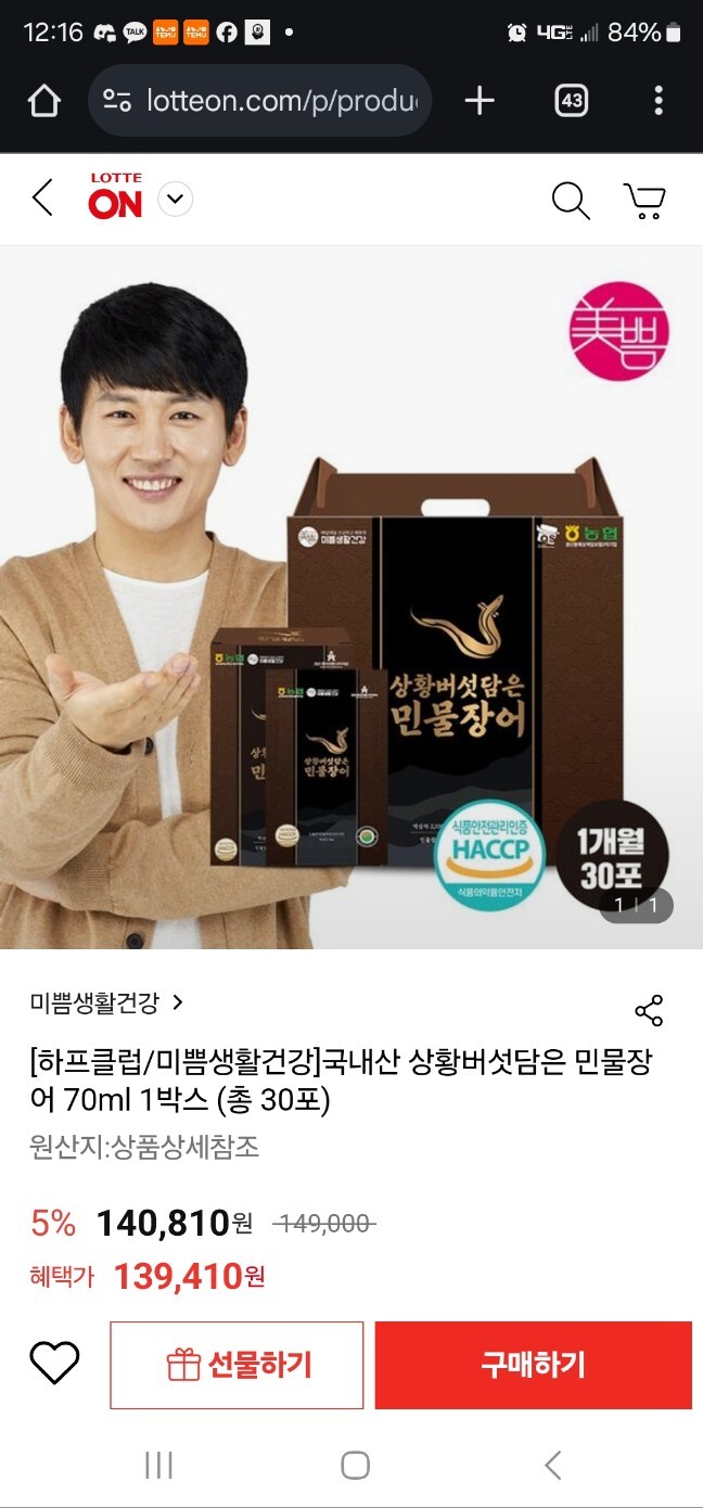 농협 미쁨생활건강 상황버섯 담은 민물장어