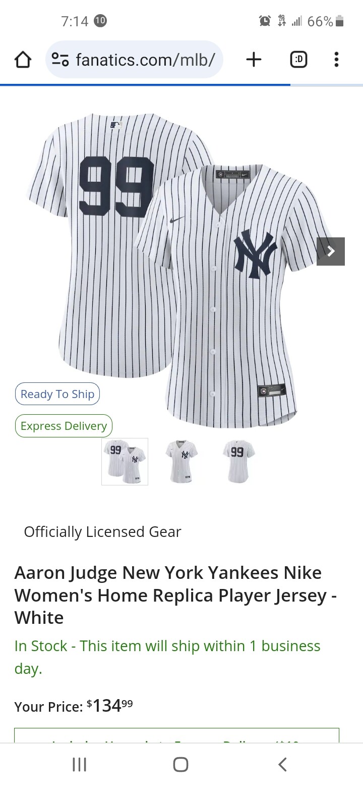7. White NY Yankees Aaron Judge 여성용 Large $60