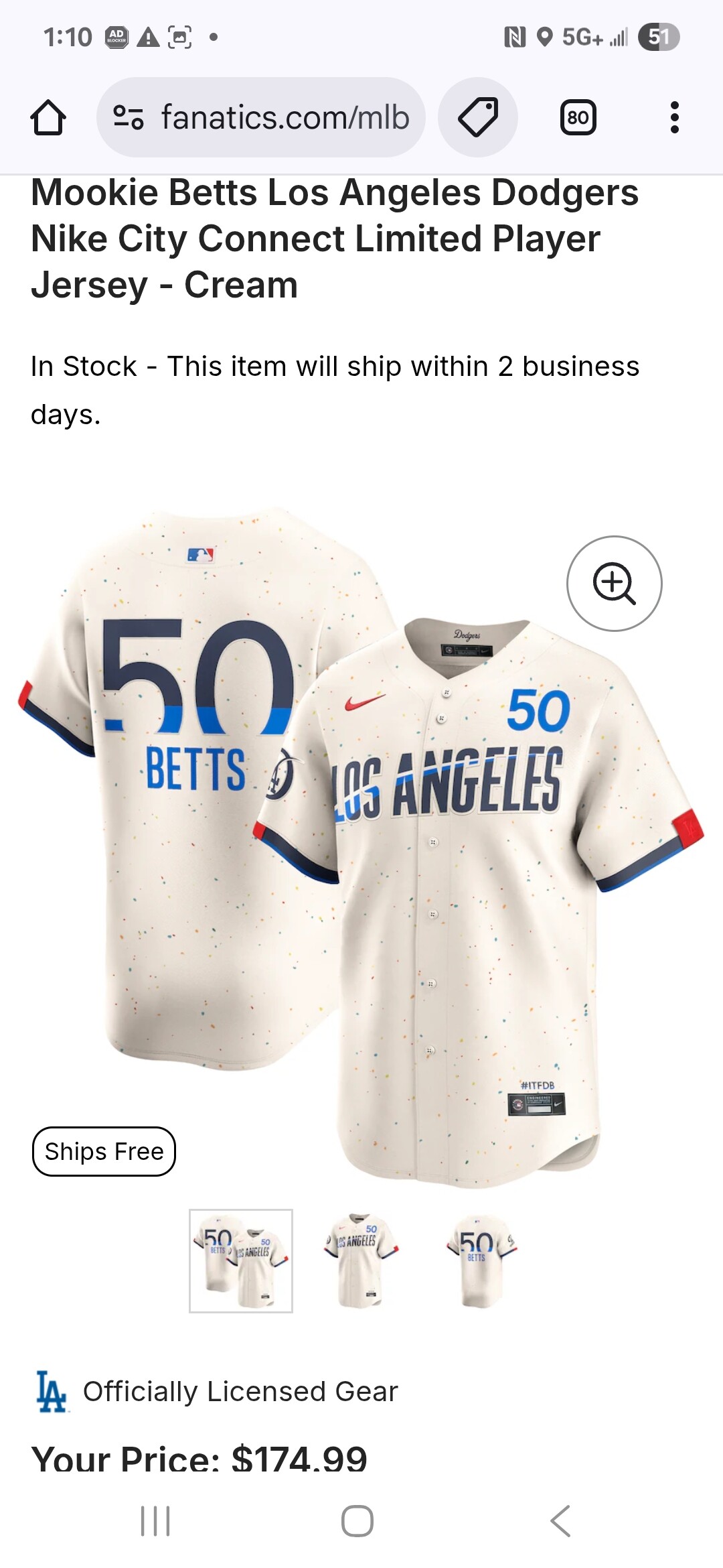 5. Ohtani City Connect Jersey 여성용 Large $100