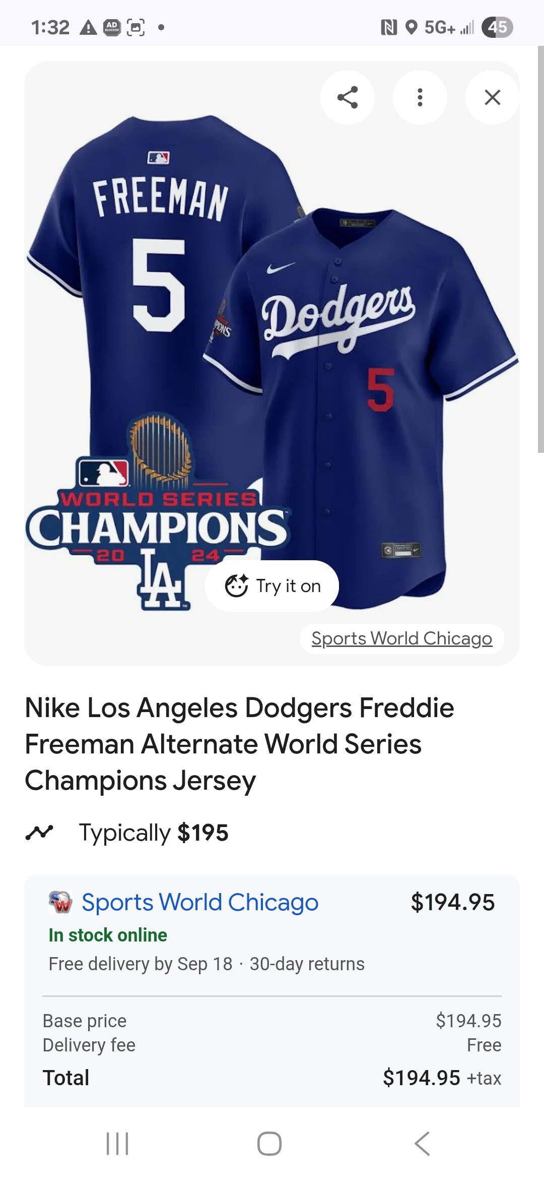 3. Freeman 2024 World series champions Limited Jersey w/o tags XL $100