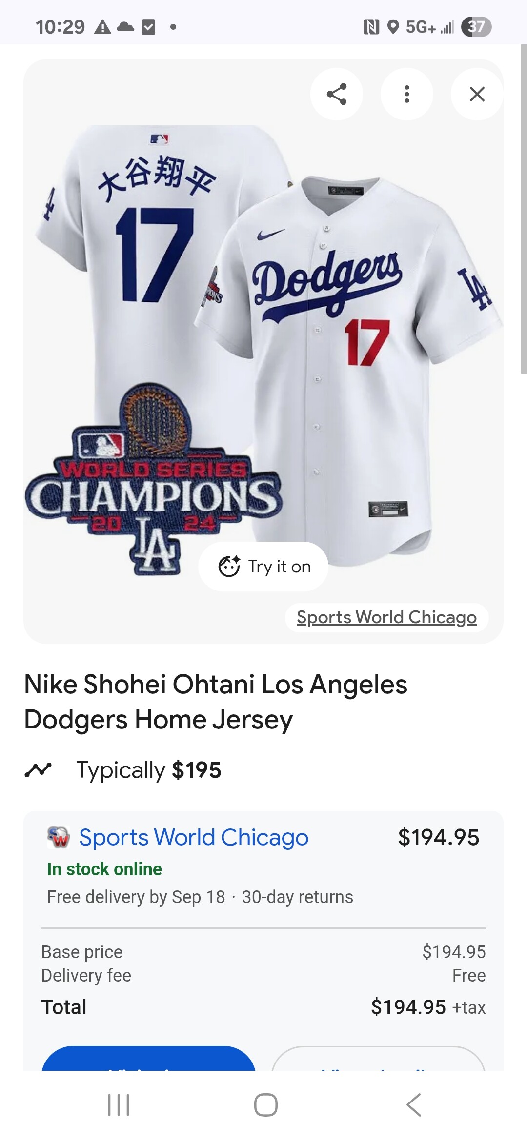 Nike store나 Dodger Clubhouse store에서 정가에 비싸게 구입하지 마세요