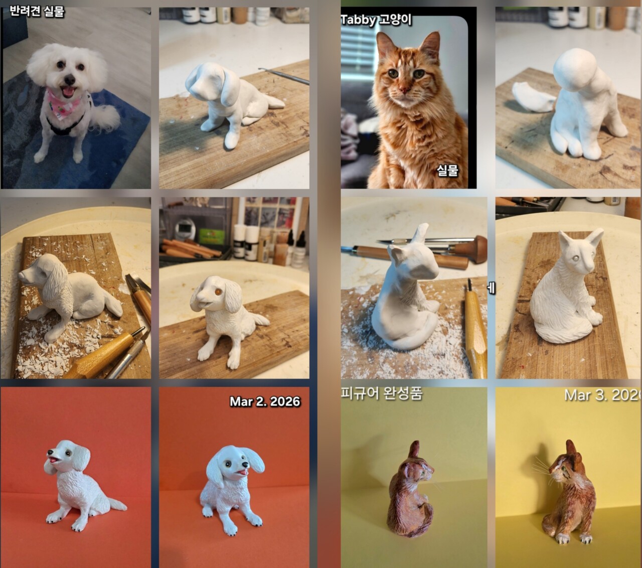 가족처럼 사랑하는 반려견, 반려묘등. 애완동물의 모형(피규어)을