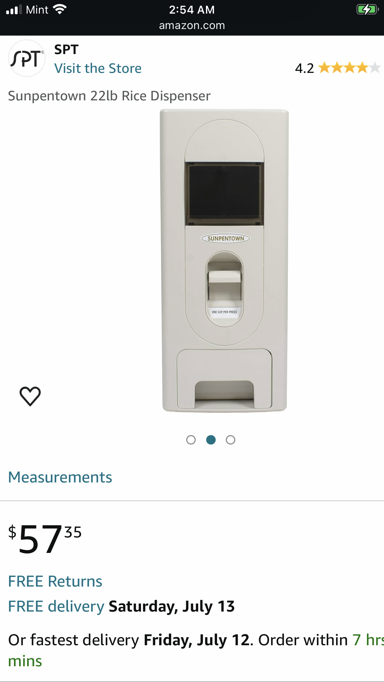Sunpentown 22Ib Rice Dispenser,