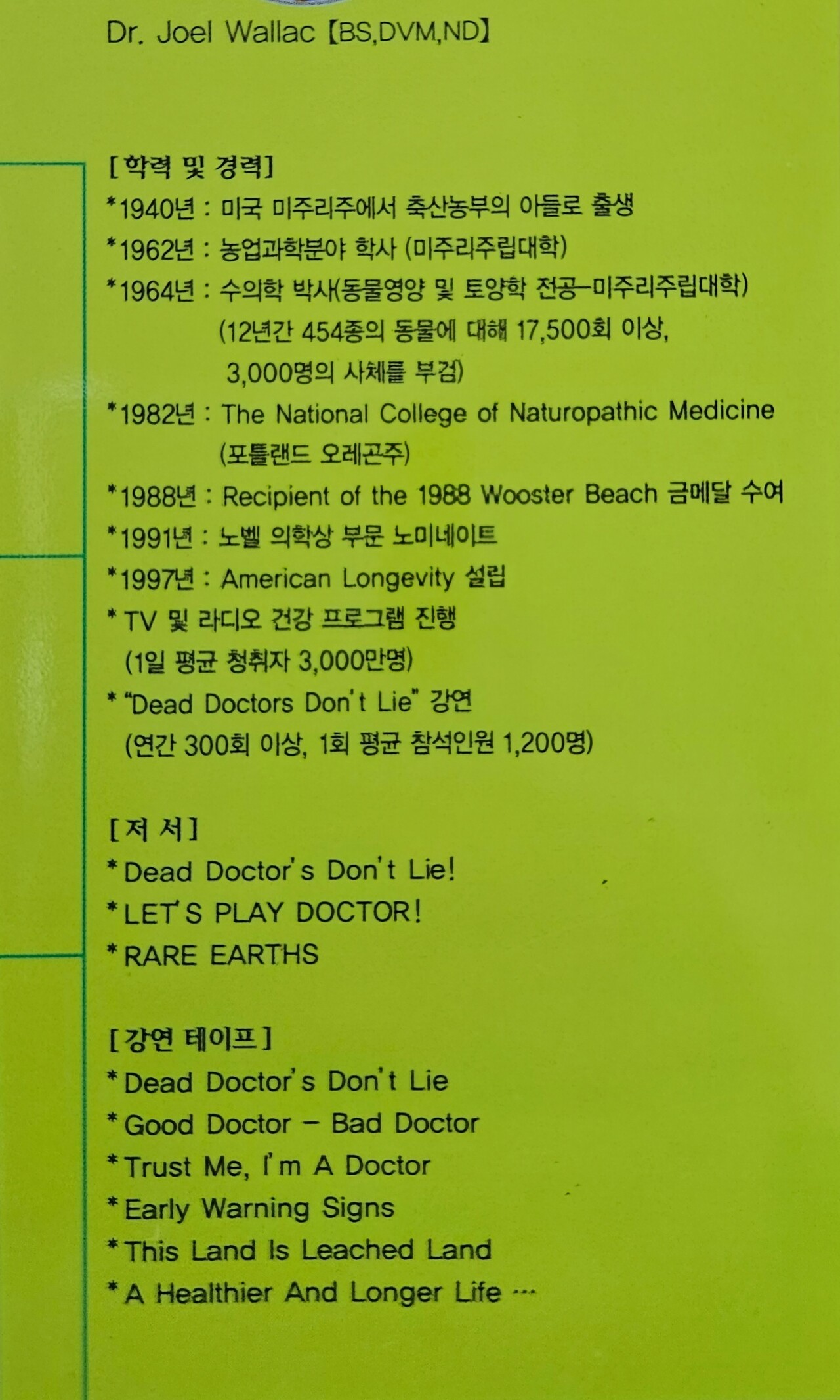 91년 노벨의학상 노미네이트 닥터 월렉의 저명한 도서