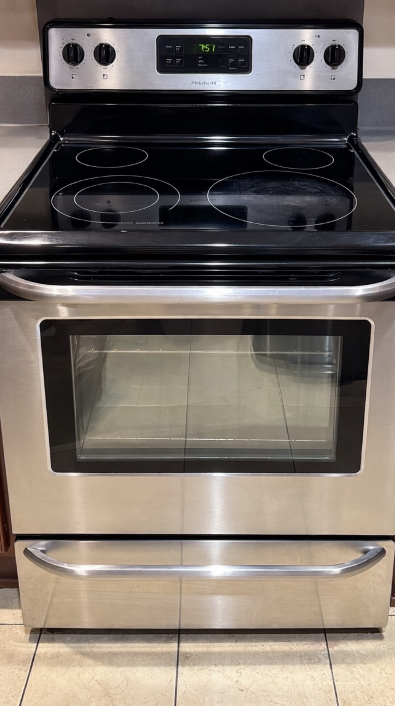• Glass cooktop freshly cleaned and polished