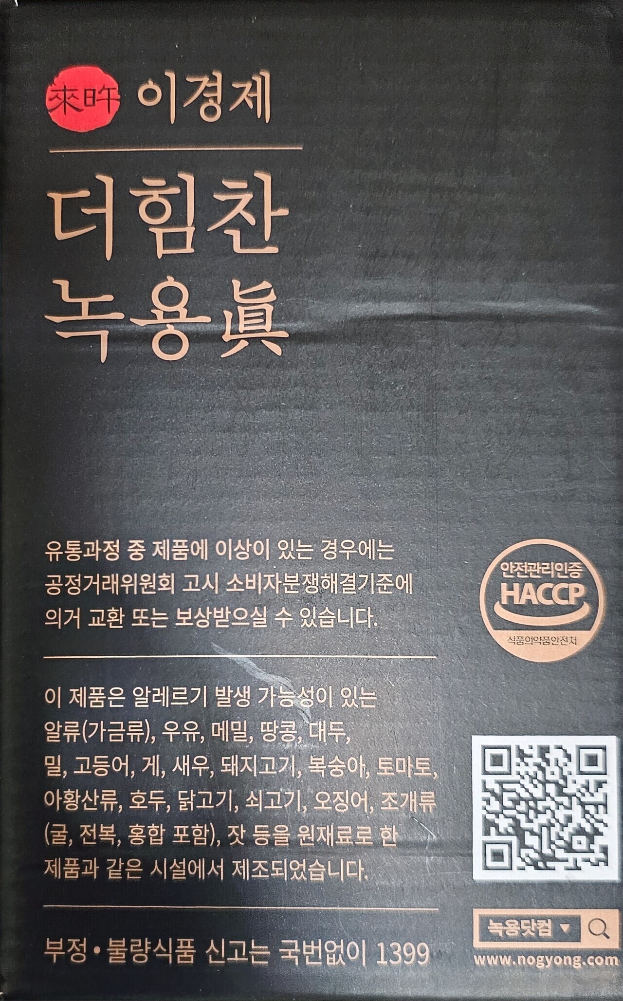 한국에서 이모님이 어머니 암수술 후 회복을 위하여 보내주신 이경제 더힘찬 녹용 판매합니다