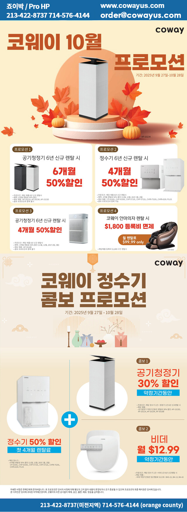 코웨이/COWAY 10월, 대고객 할인행사!!