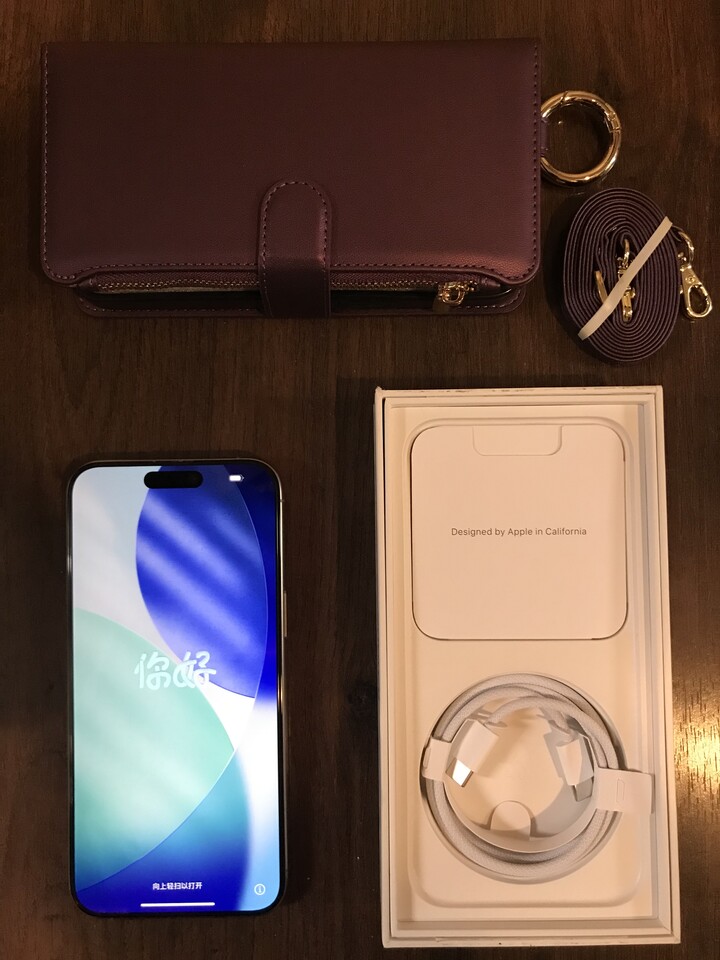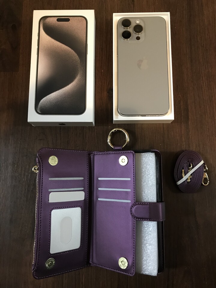 예쁜 퍼플컬러 지갑형 새 케이스와 새 차저기도 함께 드려요 iPhone 15이나 Pro 보다 파워도 세고