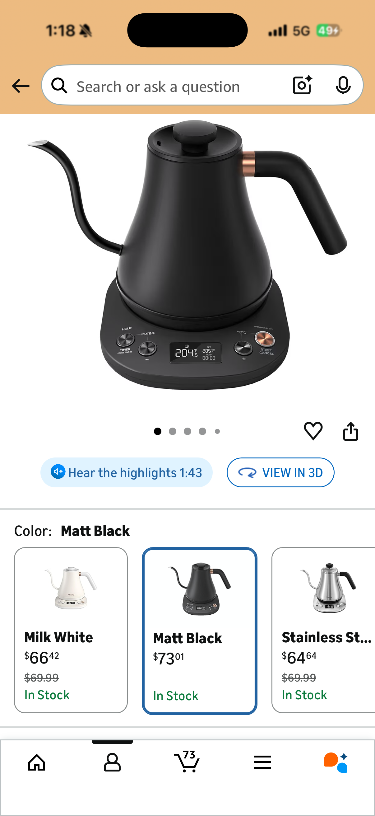 온도조절 및 유지 기능 있고 목이 gooseneck 모양이라 드립커피 추출하기에도 좋아요~