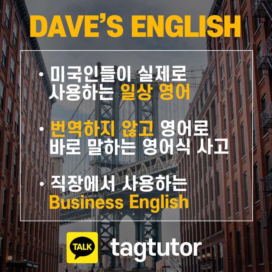 안녕하세요! 뉴욕에 거주하고 있는 Dave 입니다. 10여년 이상의 미국 내 영어강사 경험을 바탕으로 수강생의 영어 실력이나 나이에 상관 없이 일상과 관심사를 기반으로 함께 대화하는 방식의 레슨을 진행하고 있습니다.