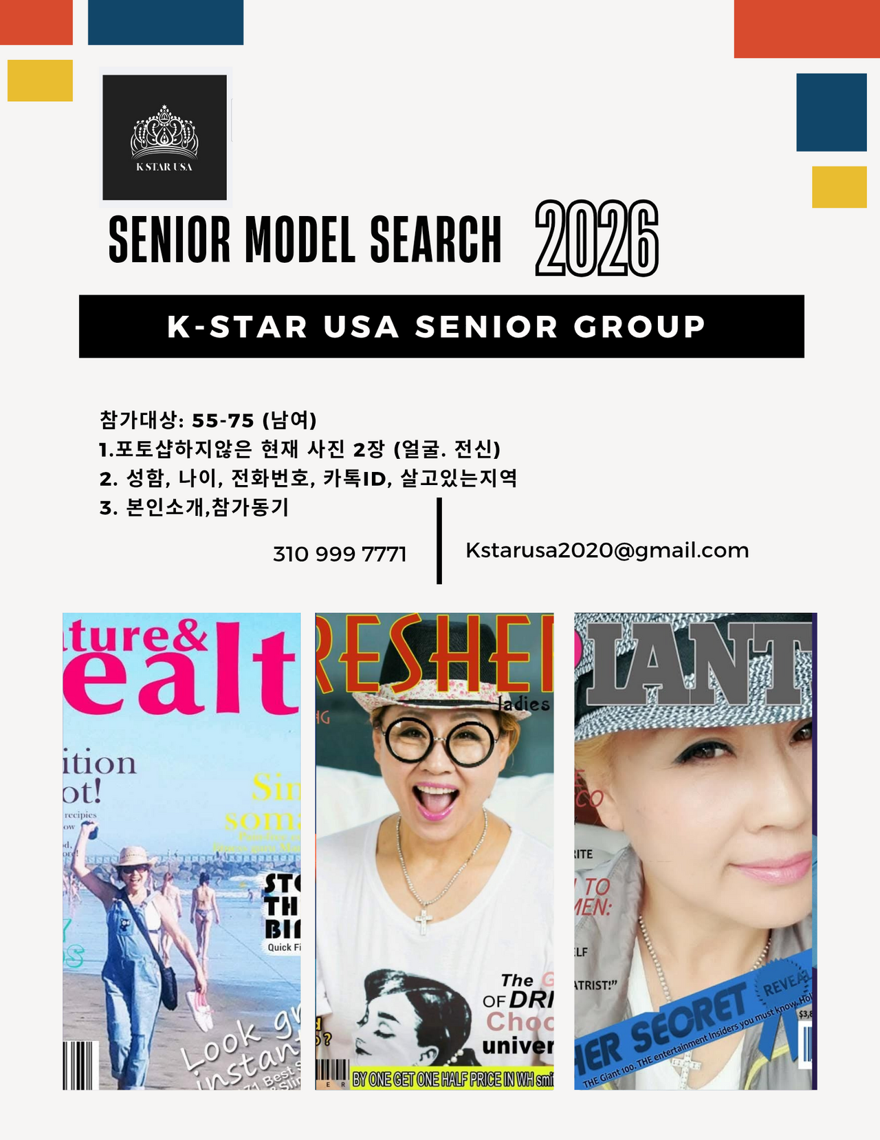 나이: 55~75세 이상을 일반적으로 시니어 모델이라 부릅니다.