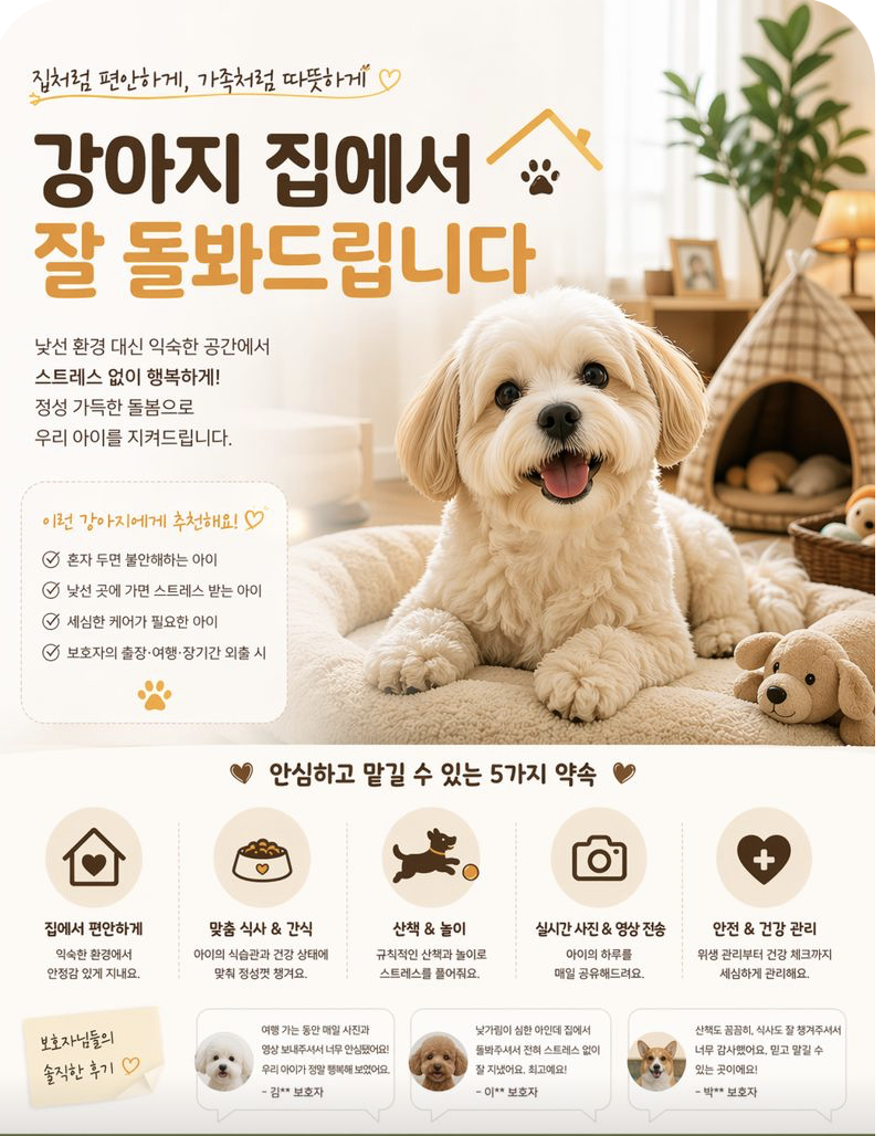 여행가시거나 출장등으로 강아지 맡겨셔야 하는분들 안심하고 맡겨주세요.^^