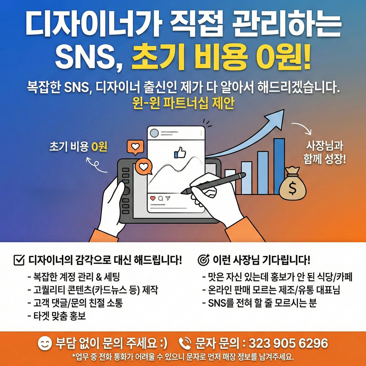 제가 사장님의 SNS(인스타그램 등)를 전담하여 키워드립니다.