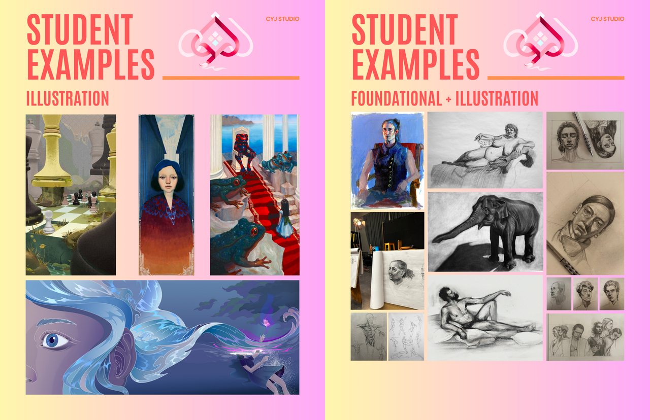 Unlike traditional art academies, the teacher provides intensive 1:1 lessons built around your unique portfolio and goals.