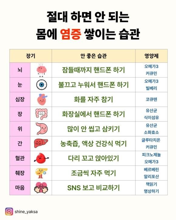 절대 하면 안되는 몸에 염증 쌓이는 습관