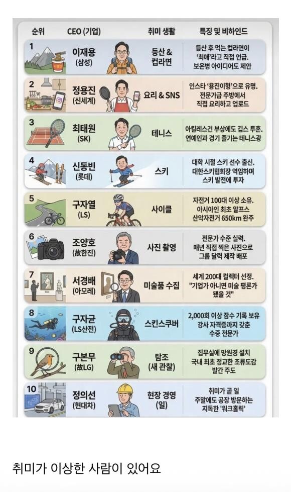 국내 10대 재벌들의 취미 생활