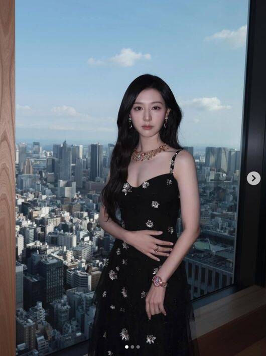 공개된 사진에는 화려한 보석을 착용하고 미모를 자랑하고 있는 김지원의 모습이 담겨 있었다. 김지원은 꽃무늬가 장식된 검정색 드레스를 입고 매혹적인 자태를 뽐냈다. 자연스러운 웨이브가 들어간 헤어스타일에 새하얀 피부가 더해져 고혹적이면서도 우아한 비주얼을 완성했다.