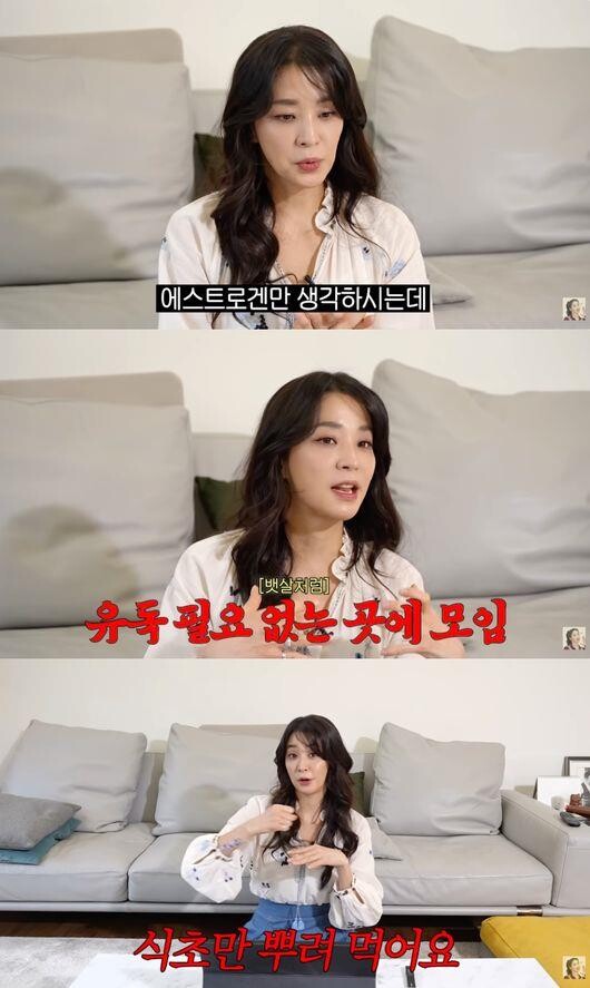 또한 그는 "똑바로 앉아있는 것만큼 운동 되는 게 없다"라며 "극단적인 식단 관리 할 때는 샐러드에 소스 없이 식초만 뿌린다. 조금 살 만할 떄는 발사믹을 뿌린다"라고 극단적인 식단 관리 비법도 밝혔다.