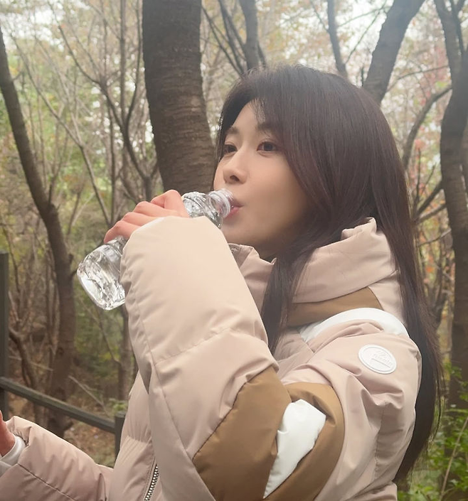 배우 하지원이 팬들과 나선 등산 나들이에서 미모를 뽐내고 있다.