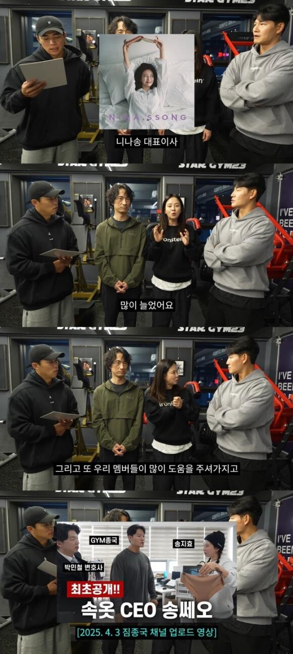 송지효는 "'짐종국' 덕분에 잘 됐다"라며 '짐종국' 측에 감사 인사를 전했다. 김종국은 지난 4월, 자신의 채널 '짐종국'에 속옷 브랜드 CEO로 변신한 송지효의 일상을 담은 바 있다.