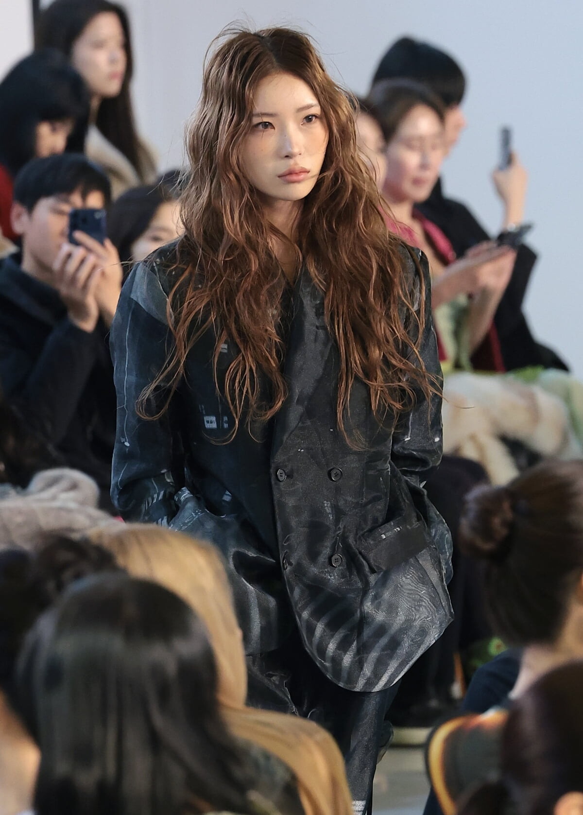 디자이너 브랜드 페노메논시퍼(FENOMENON CYPHER) 쇼 모델로 캣워크를 소화한 최준희는 긴 웨이브 헤어스타일과 절제된 워킹으로 관객들의 시선을 한 몸에 받았다.