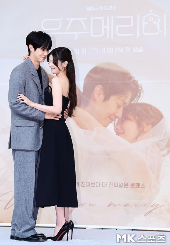 배우 정소민이 SBS 새 금토드라마 ‘우주메리미’ 제작발표회에서 단아하면서도 우아한 자태로 시선을 압도했다.