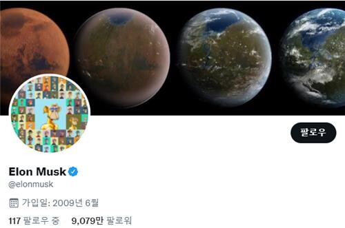 4일 CNBC 방송에 따르면 머스크 CEO는 본인의 트위터 계정 프로필 사진을 '지루한 원숭이들의 요트 클럽(Bored Ape Yacht Club, BAYC)' 아바타들이 나온 이미지로 바꿨다.