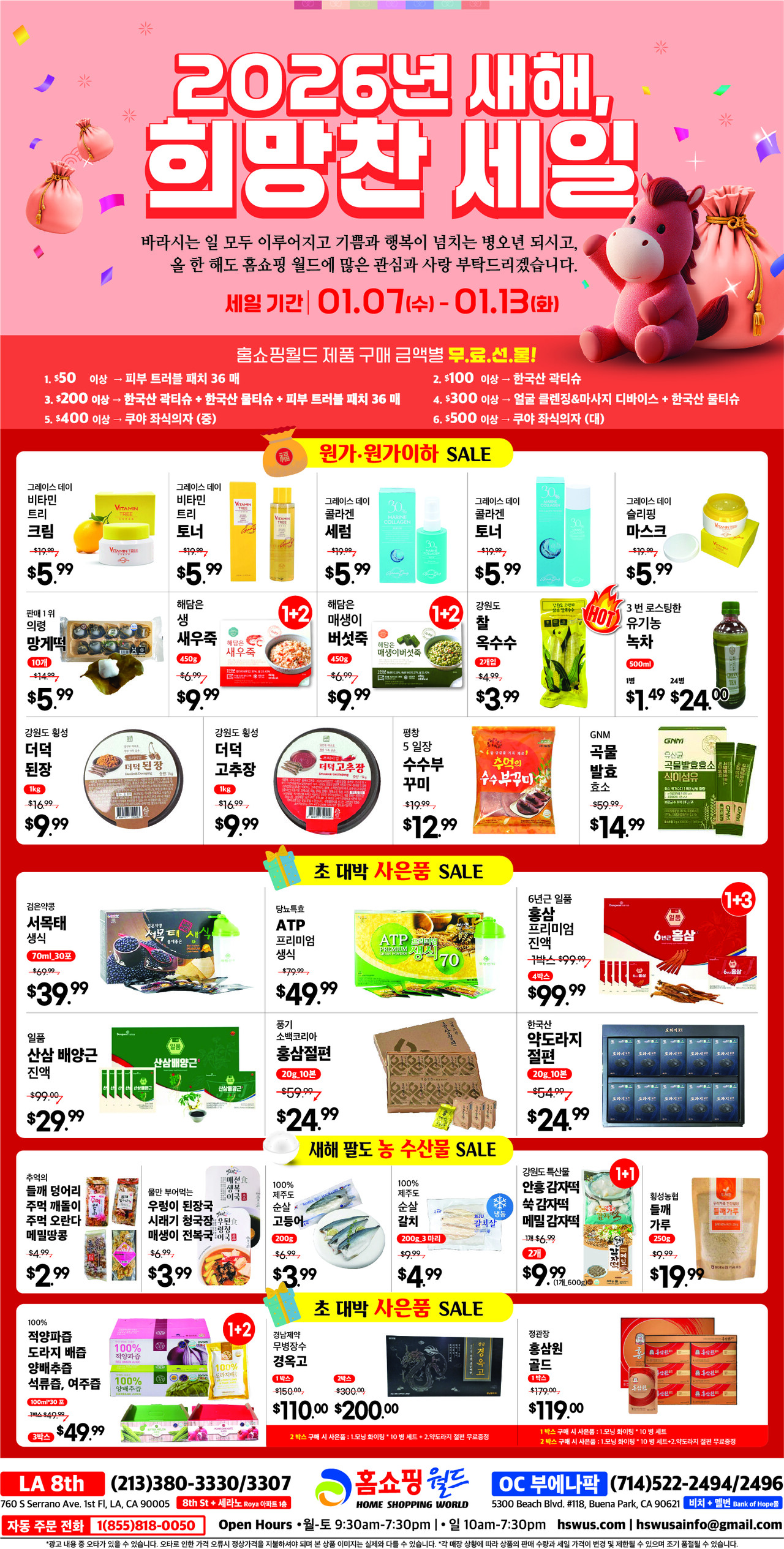 홈쇼핑월드 2026년 새해 희망찬 세일!! 2026년1월7일부터 1월13일까지