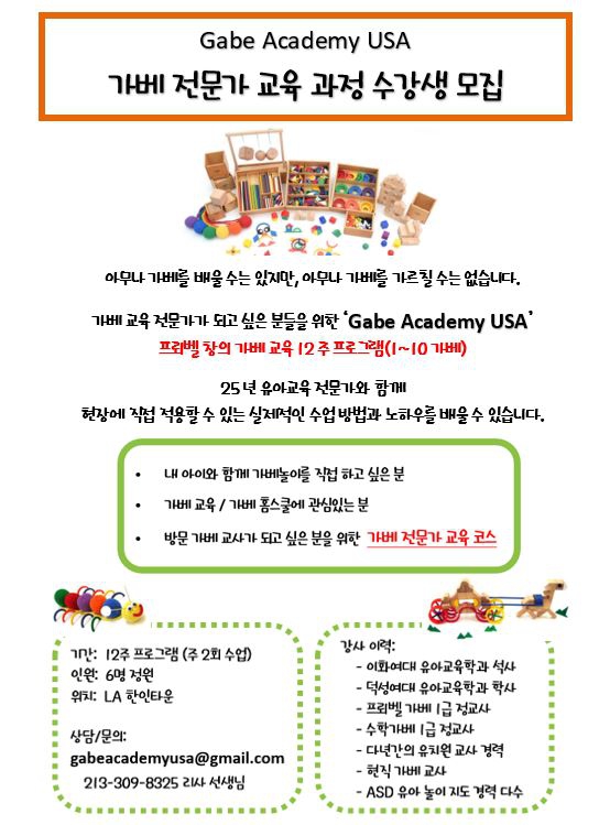 가베 전문가 교육 프로그램에 대한 2차 설명회를 아래와 같이 개최합니다.