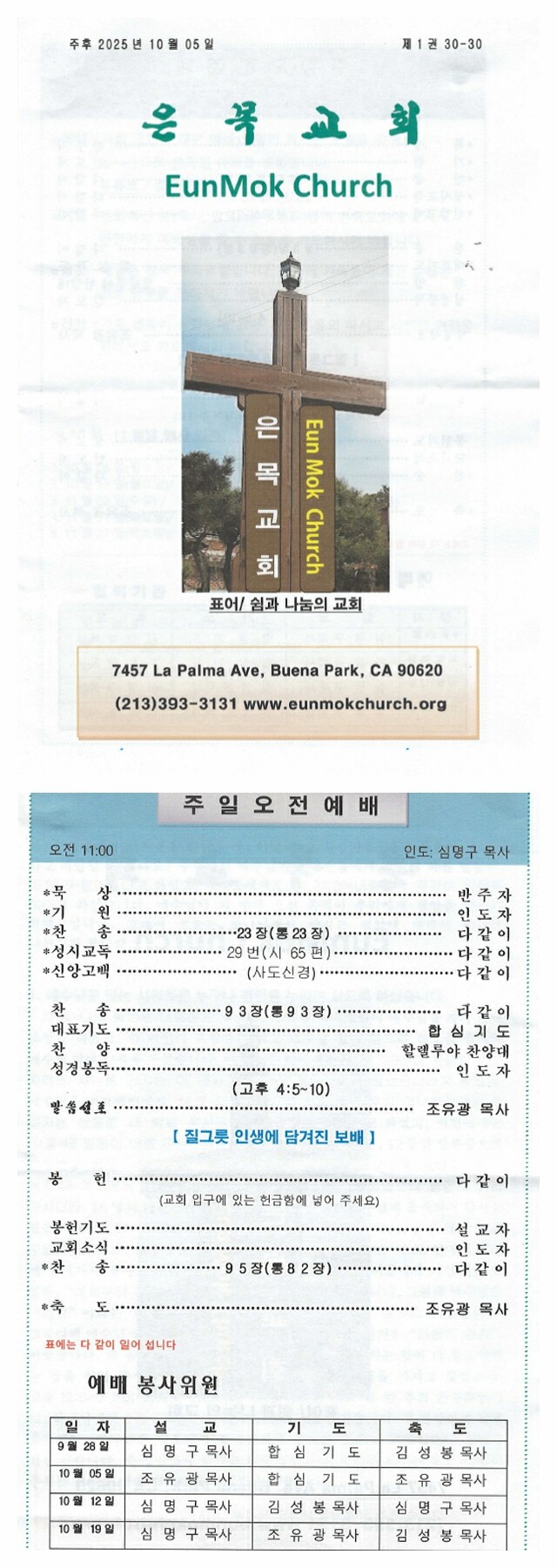 교회 전화번호 : 213 393 3131