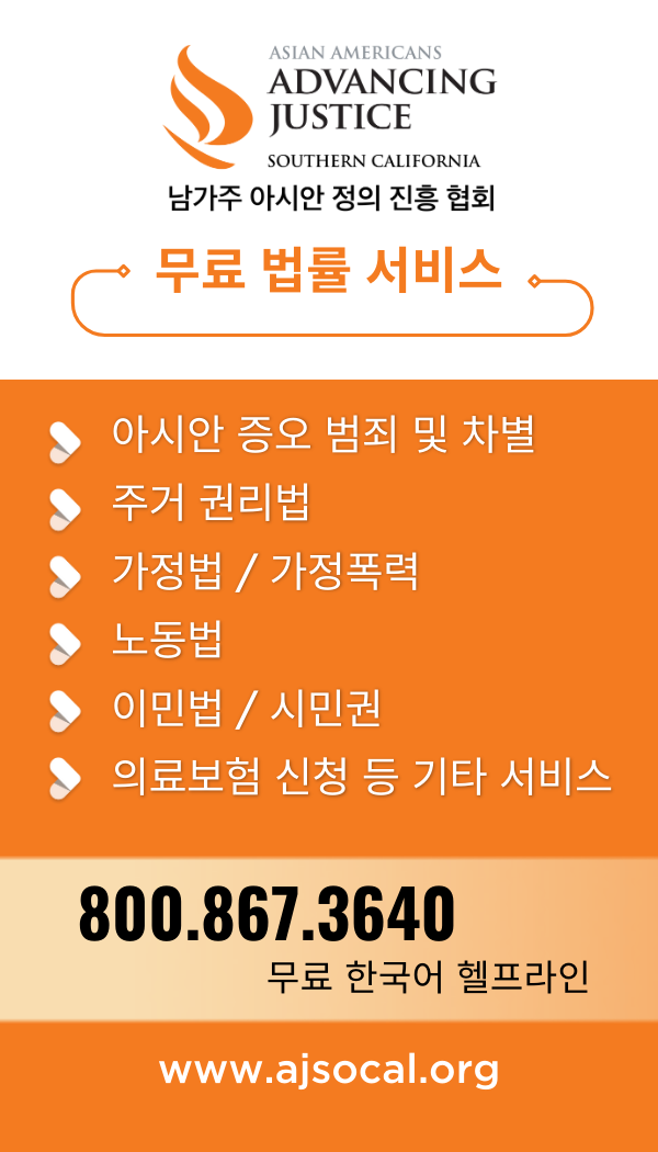 남가주 아시안 정의 진흥 협회는 상담을 통해 가정폭력, 가정법, 이민법, 시민권, 주택 (주거)권리, 차별, 인종차별과 증오사건 등에 대해 협회내 변호사의 상담과 조언을 받으실 수 있습니다.
