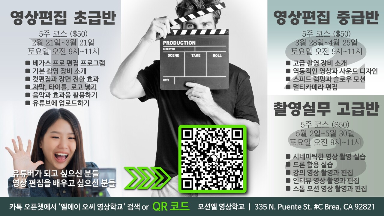 1. 영상편집 초급반 5주 코스 ($50)