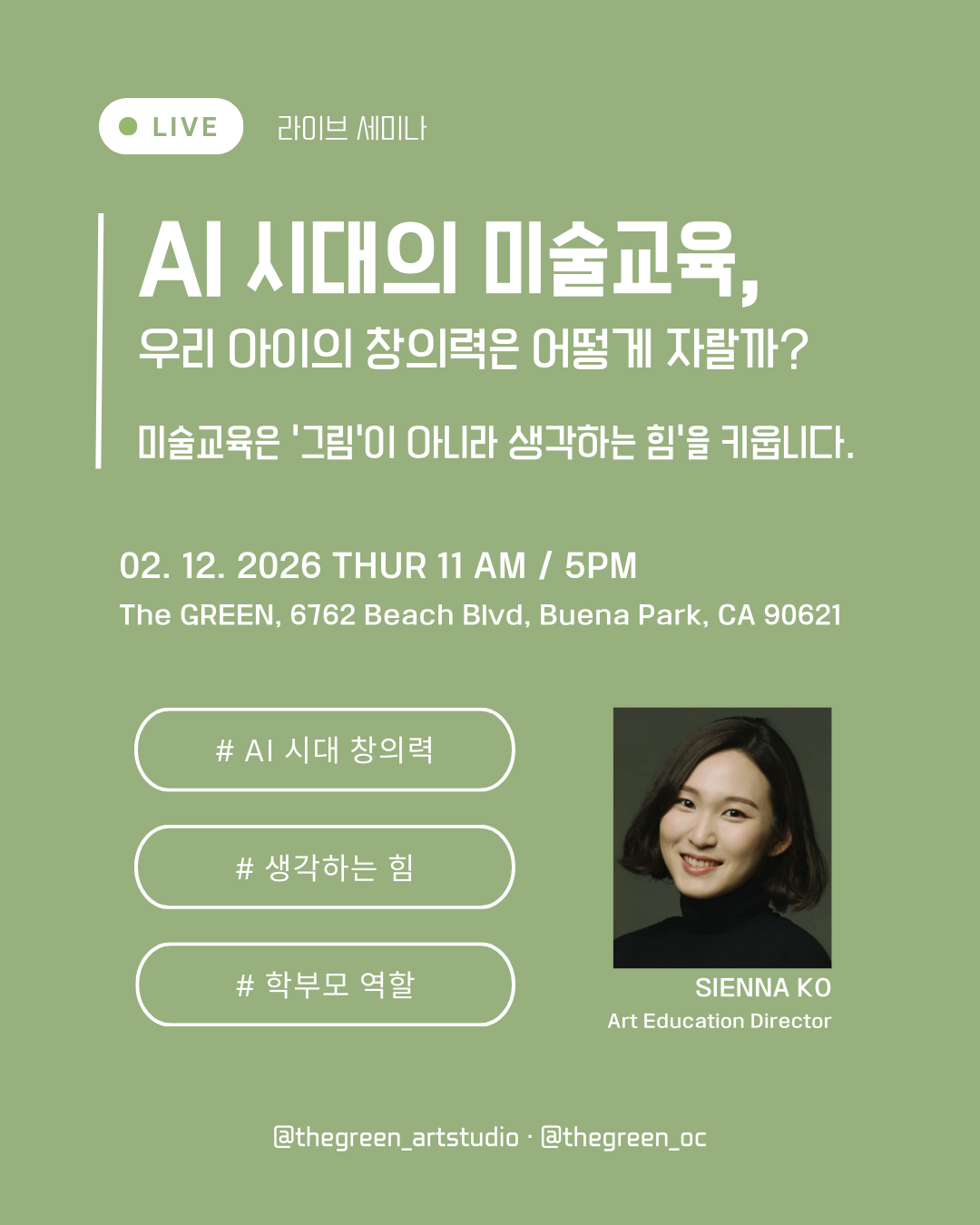 https://www.instagram.com/thegreen_oc/ 프로필 링크로 신청해주세요.